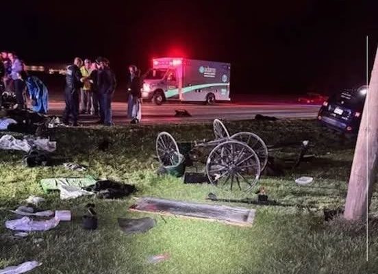 BERNE, Indiana — A late-night collision on State Road 218 turned a peaceful rural road into a chaotic emergency scene after a Jeep struck a horse-drawn Amish buggy, throwing nearly everyone out of the vehicle and sending multiple people to hospitals. First responders were called to the crash at about 11:20 p.m. on October 7; when they arrived they found a badly damaged buggy scattered across the pavement and a Jeep in a ditch.