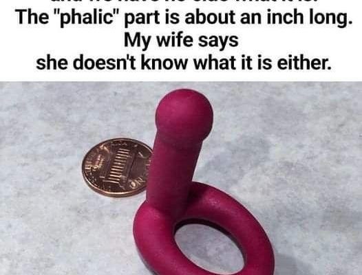 May be an image of text that says "My son found this and we have no clue what it is. The "phalic" part is about about an inch long. My wife says she doesn't know what it is either."