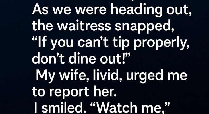 On the drive home, my wife admitted she had assumed I was going back in to report the waitress. I told her that