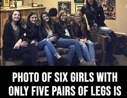A picture of six girls sitting on a couch… but only five pairs of legs are visible. Yep. Six people, five sets of legs. The internet is losing it. Let’s break it down.